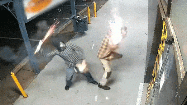Two men targeted a tobacconist armed with Molotov cocktails in Queensland, nearly setting their own flannel shirts alight.