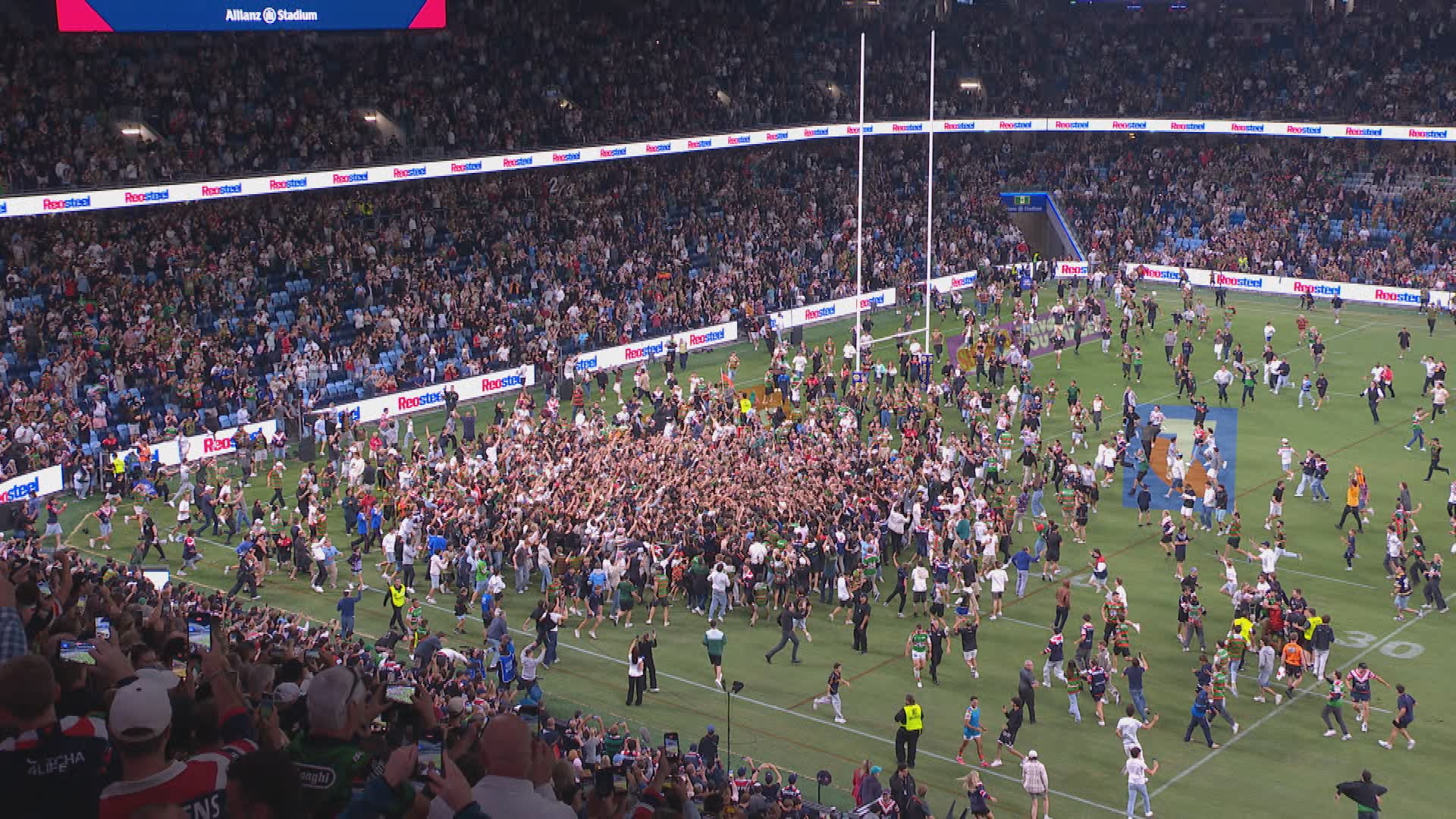 Security at first had attempted to stop some of the fans but it was to no use in an iconic moment for rugby league.