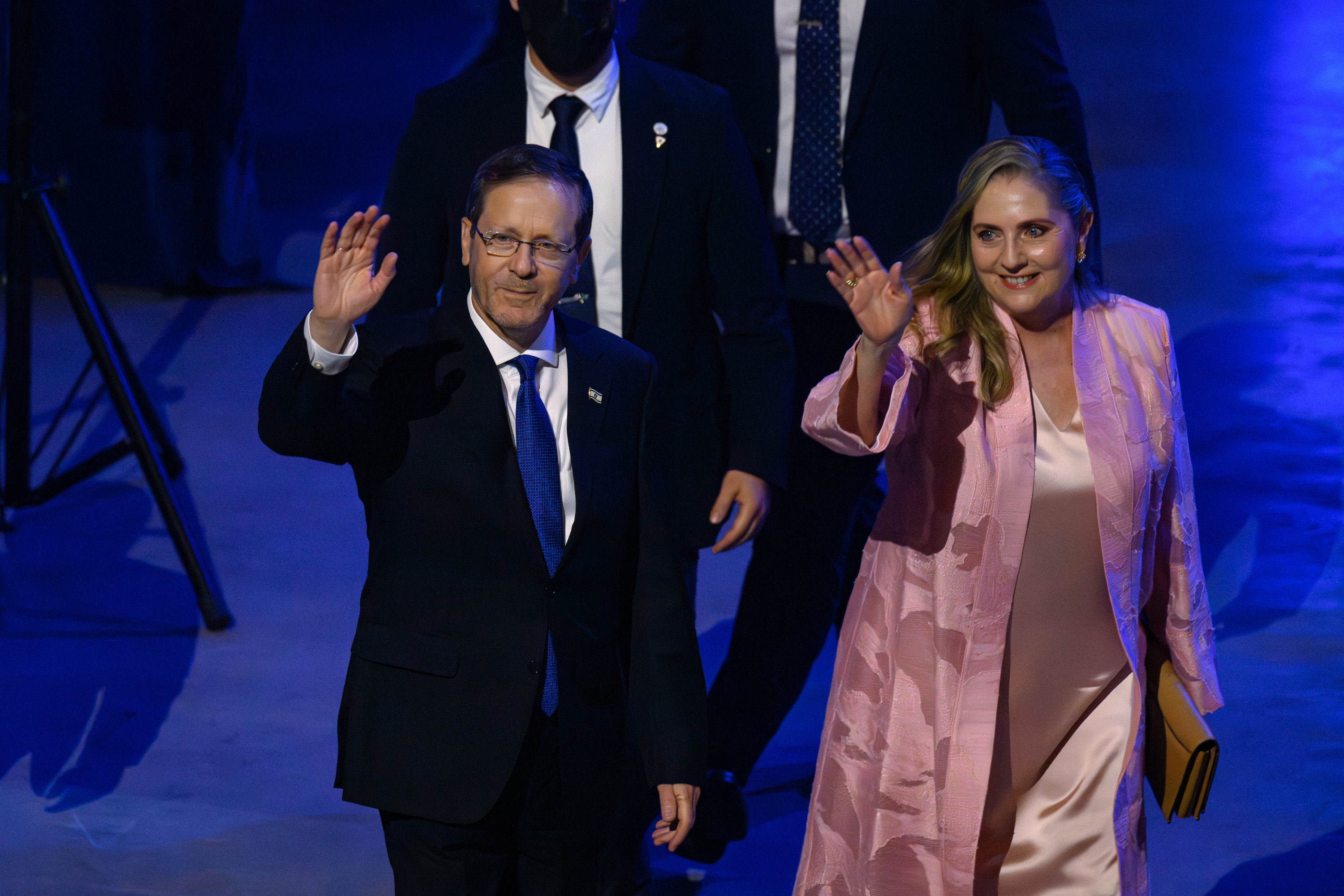 NSW Premier Chris Minns and former Liberal Party heavyweights were all in attendance as the president hailed the Bondi heroes as "the finest of Australia" and called for an "upgrade" to relations between the countries.