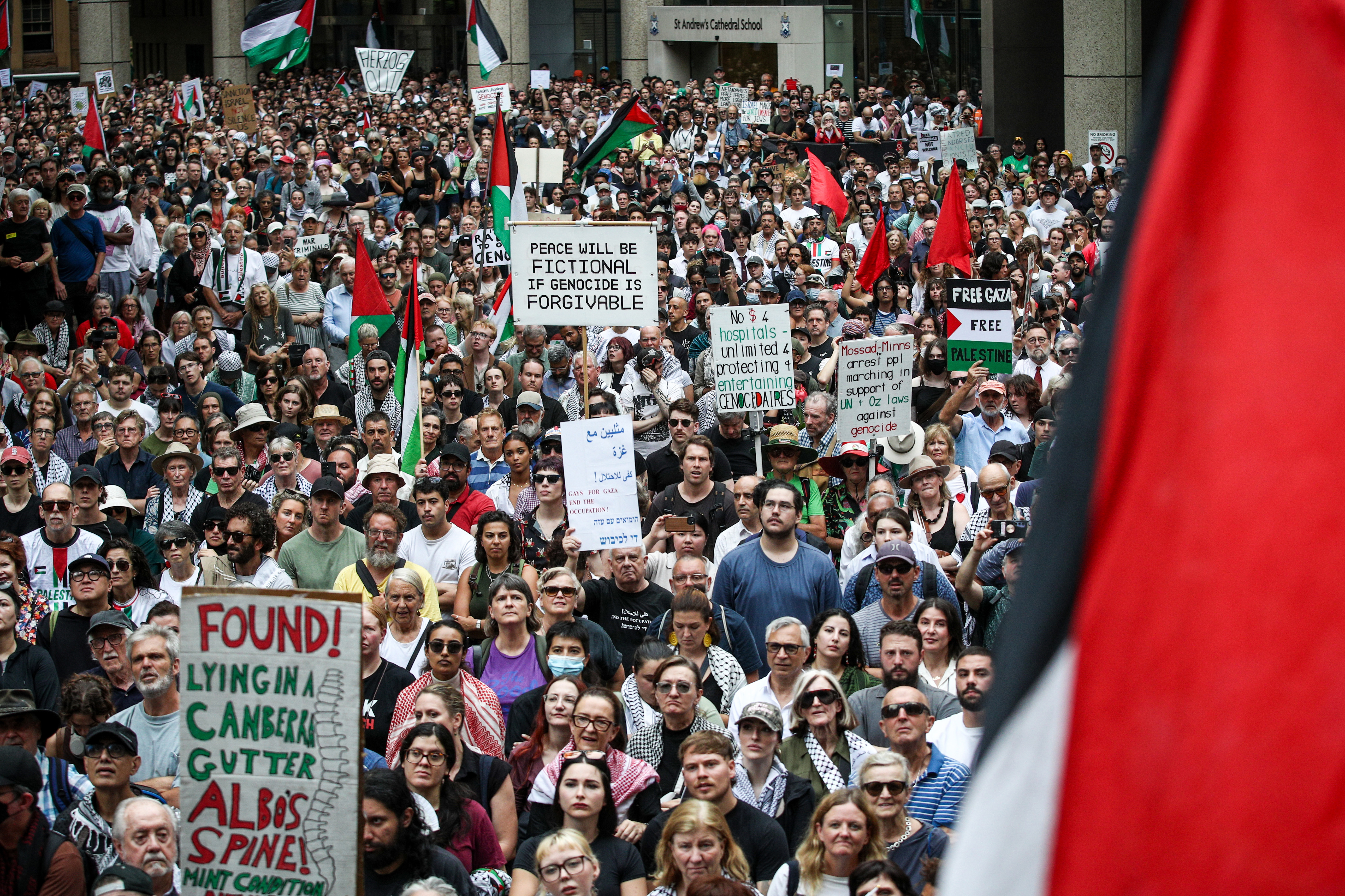 Before the judgement, the Palestine Action Group said that up to 5000 people would march from Town Hall to NSW Parliament.