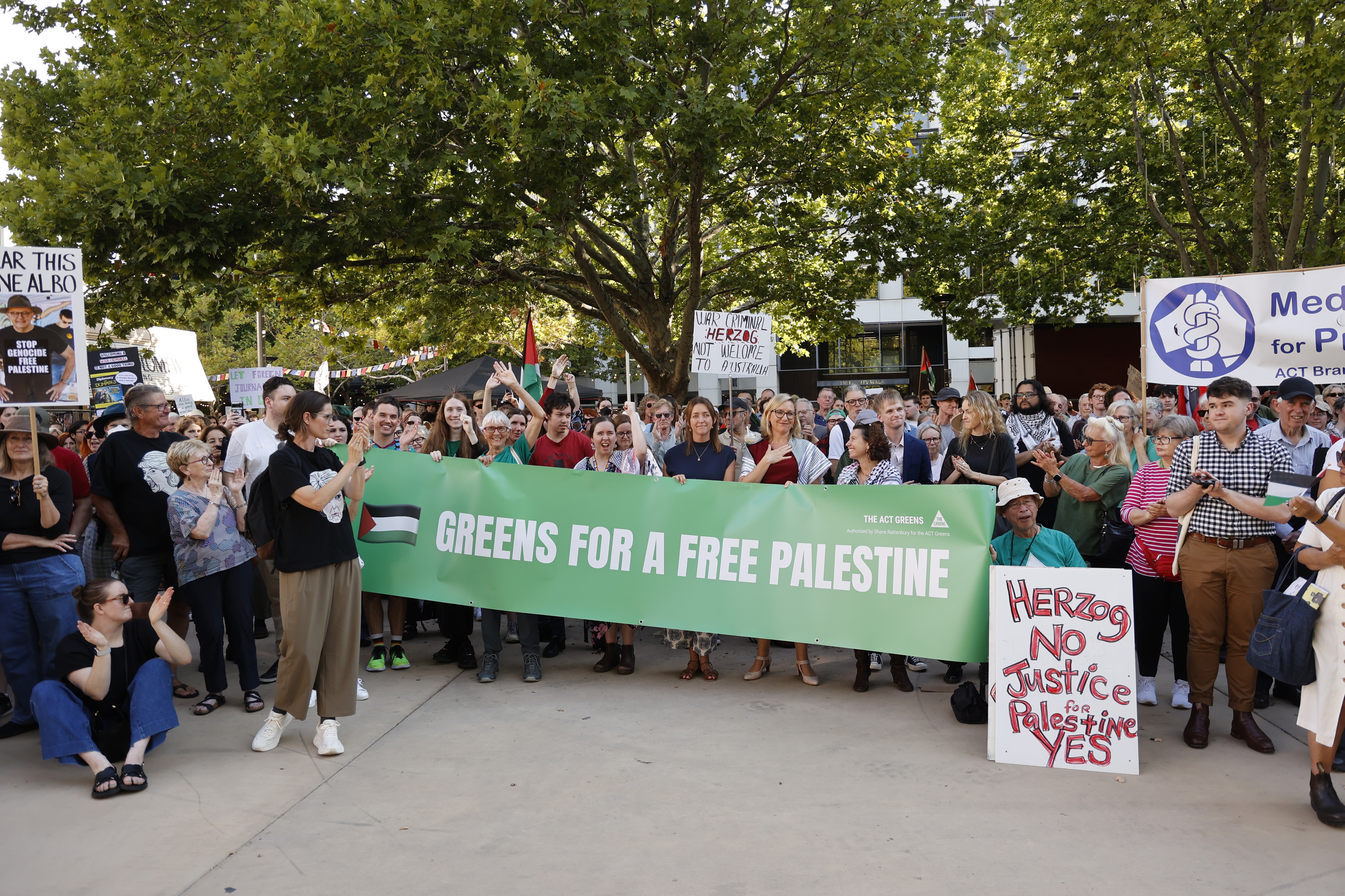 "We're not intimidated. We're going to keep coming out onto the streets and we're going to tell Albanese and Herzog that the whole world knows they're committing a genocide," Lucy from teachers and School Staff for Palestine said.