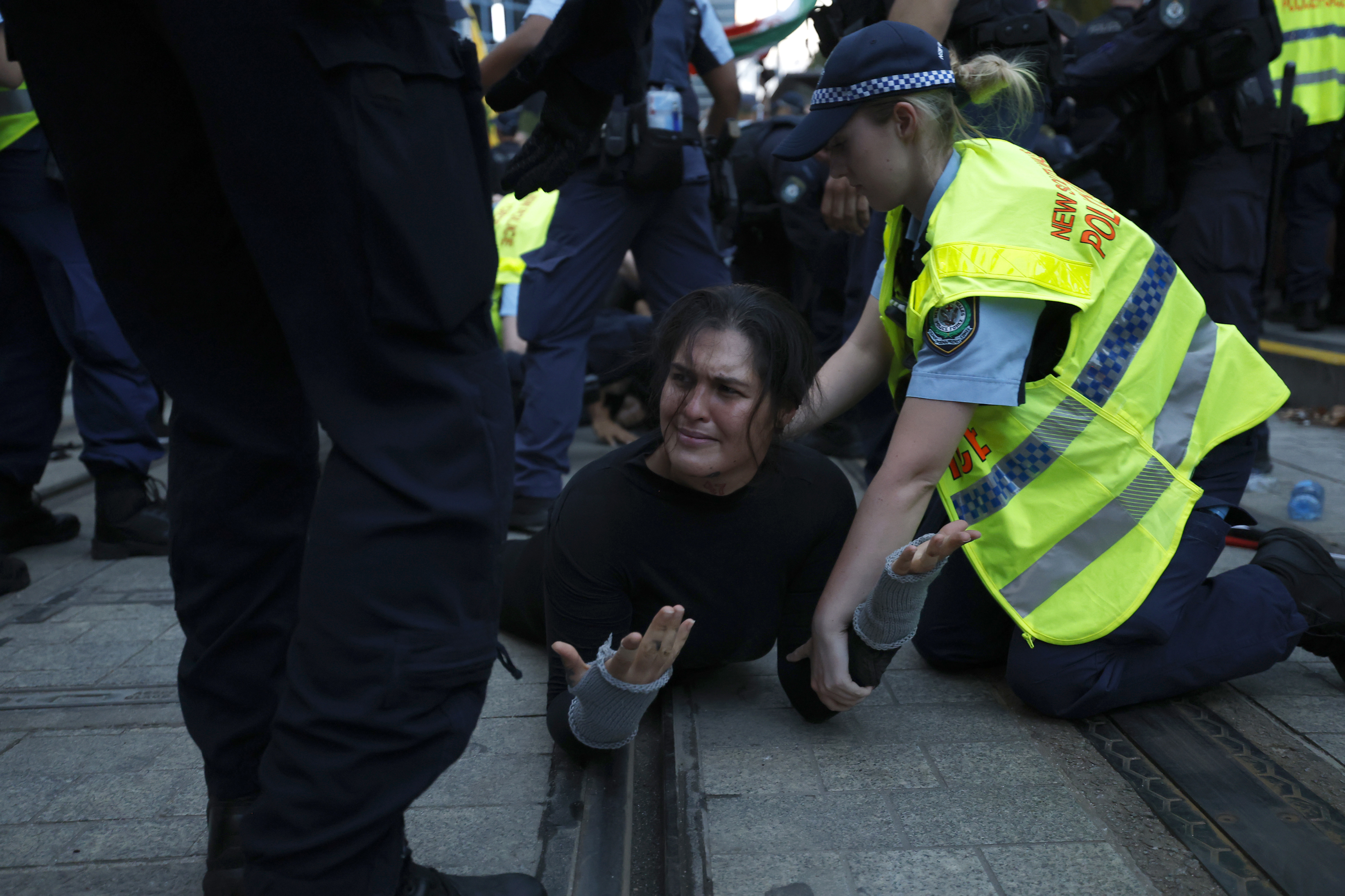 Those arrested are part of thousands demonstrating in Sydney and multiple other Australian cities in opposition to Israeli President Isaac Herzog's visit.