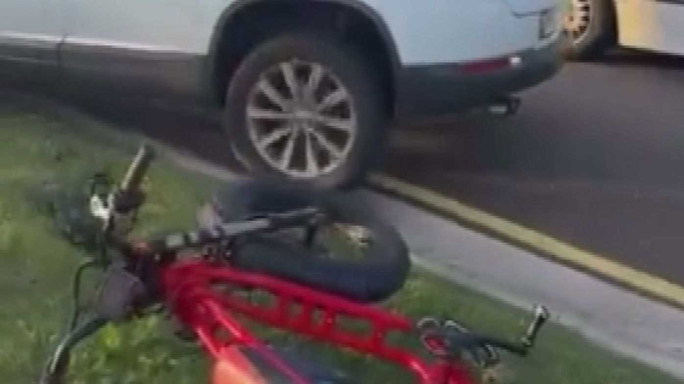 Police say events began when the 38-year-old man driving the vehicle allegedly made an offensive hand gesture towards a group of teenage e-bike riders before driving away.