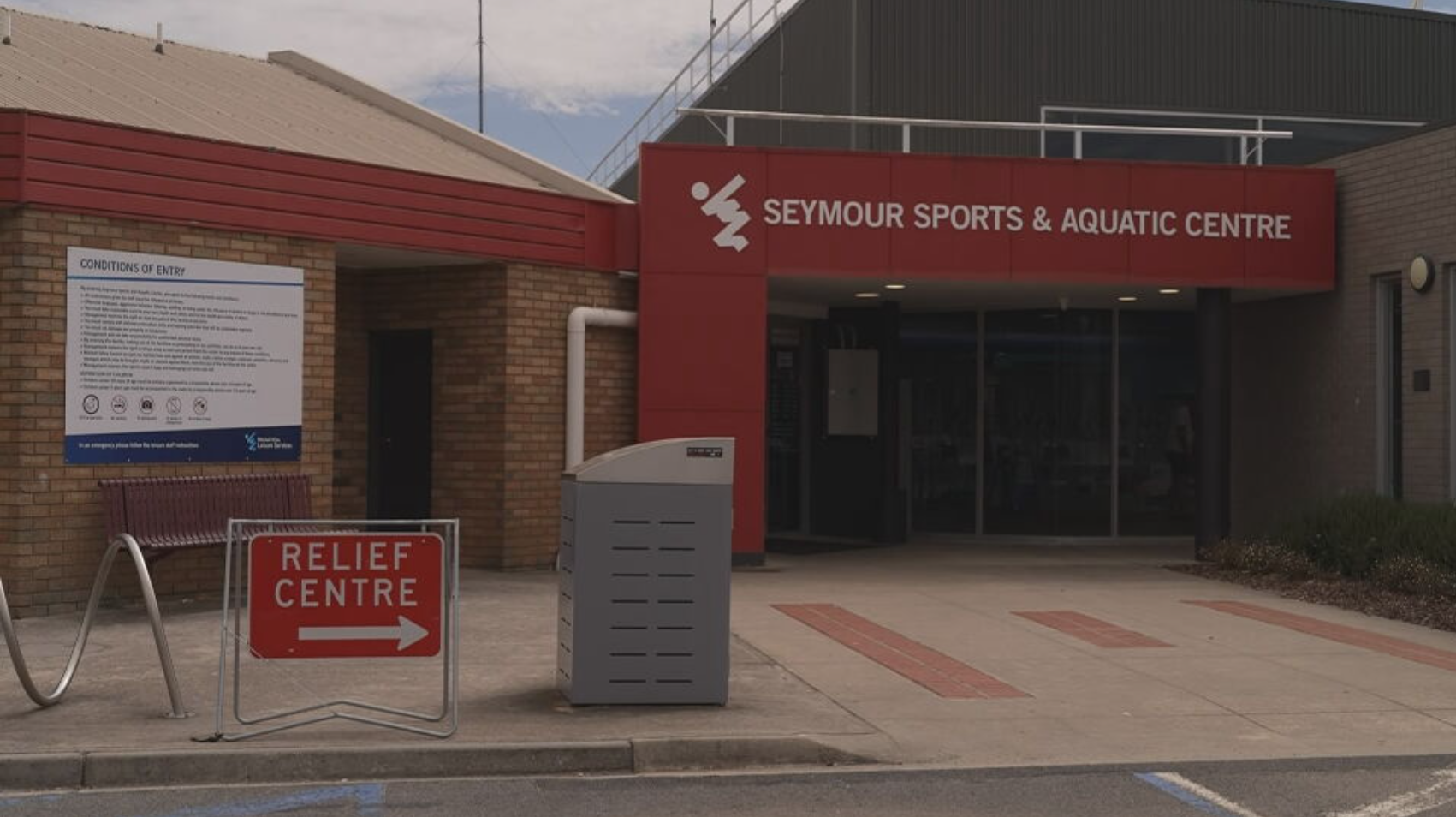 An emergency relief centre is open at Seymour Sports and Aquatics Centre on Pollard Street in Seymour.