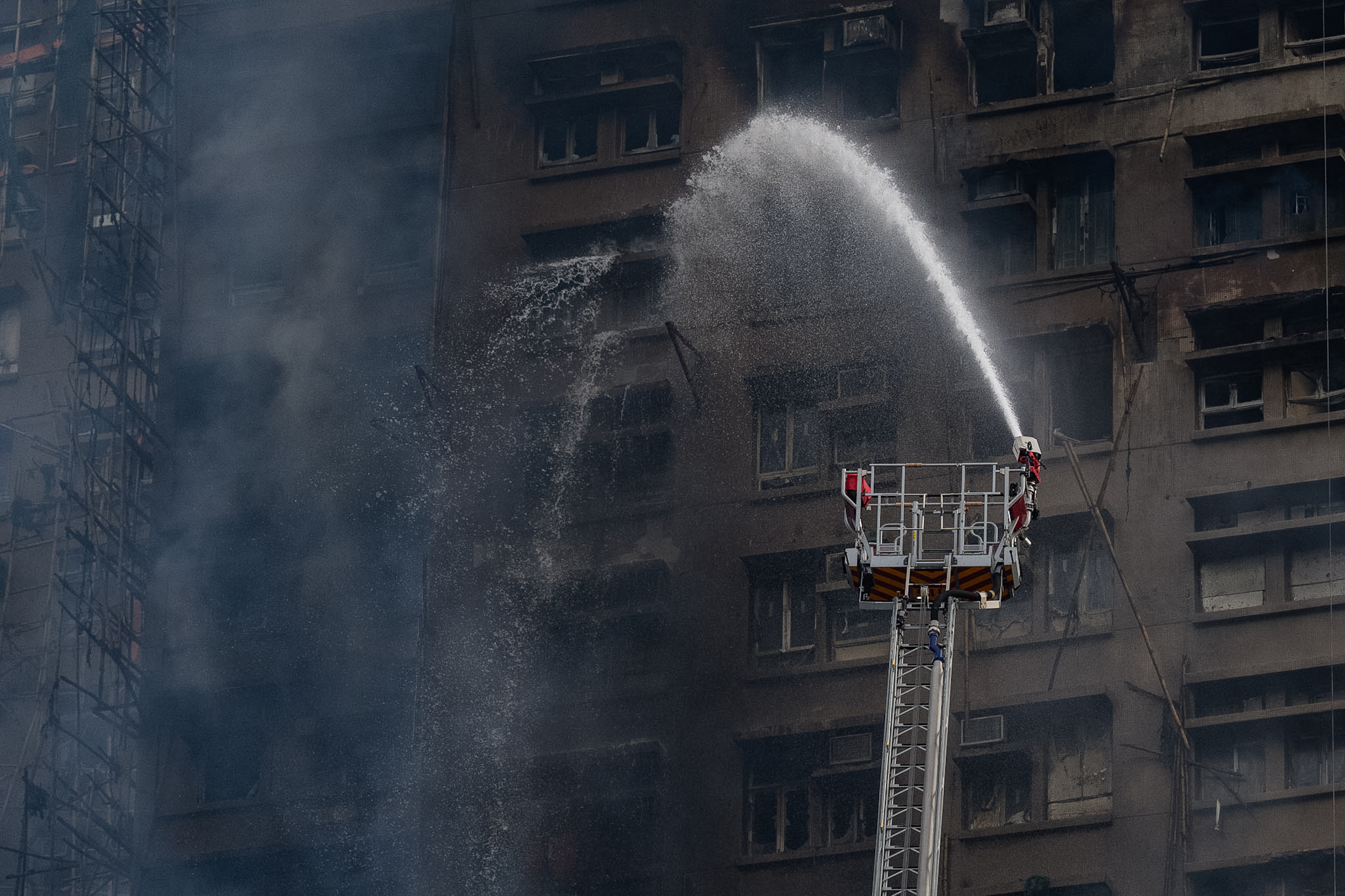 Firefighters continue to battle blazes at a high-rise apartment complex in Hong Kong, as the death toll rose to 83 in one of the deadliest fires in the city's modern history.