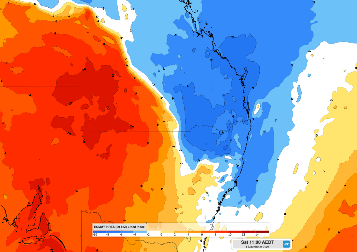 "Saturday's storms will be most active between central eastern Queensland and central NSW, which could include both Brisbane and Sydney," Weatherzone's Ben Domensino wrote.