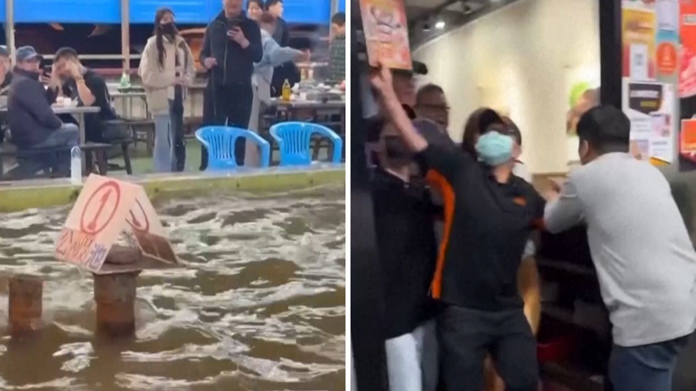 Local television showed hanging TVs swaying inside an office building, and spilled cleaning products and broken bottles that had fallen off supermarket shelves.
