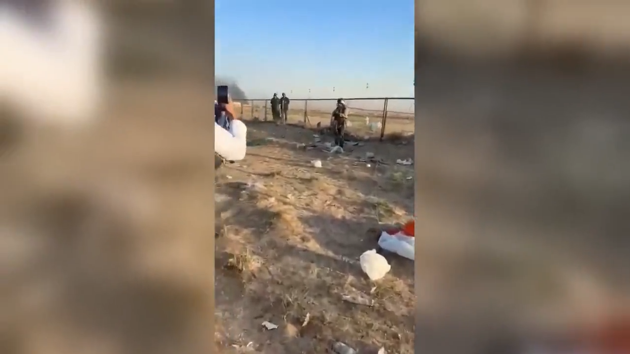 Other videos geolocated by CNN appear to show a fighter jet pilot on the ground in Kuwait after ejecting from an aircraft.