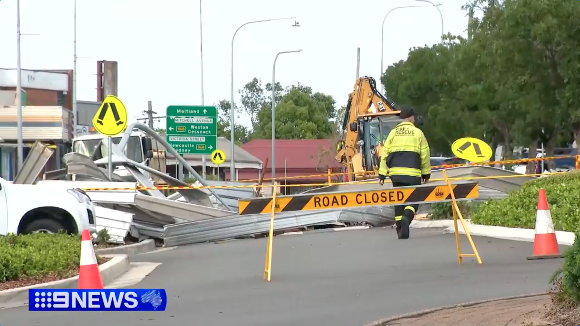 The main street of Kurri Kurri, north-west of Newcastle, was left looking like a disaster zone.
